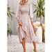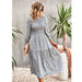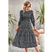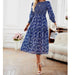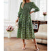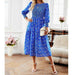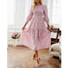 Women's Casual Long Sleeve Floral Dress Crewneck A-Line Mid Length Dress