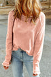 Apricot Pink Textured Round Neck Long Sleeve Top