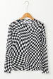 Black Checkered Pattern Mesh Mock Neck Long Sleeve Top