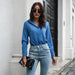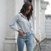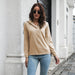 Solid Color, Pull on Blouse, Button Cuff, V Neckline with Point Collar, Long Sleeves, Smooth