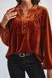 Gold Flame Lantern Sleeve Beaded Split V Neck Velvet Top