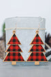 Red Plaid Christmas Tree Wooden Pendant Earrings