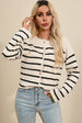 A classic striped pattern adds a timeless, versatile look to this knit cardigan.