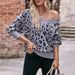 Women V-neck Off-the-shoulder Leopard Print Pullover Loose Fashion Sweater