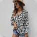 Womens Fall Fashion  Boho Tops Casual Frill Trim Mock Neck Shirts Puff Long Sleeve Blouse Floral Print Top