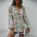 Womens Fall Fashion Boho Tops Casual Frill Trim Mock Neck Shirts Puff Long Sleeve Blouse Floral Print Top