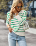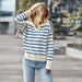 Women's knitted striped sweater lapel casual top
