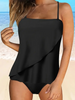 Removable Padded: The athletic two piece suit with soft light contoured removable padded and back adjustable straps can provide shape and modest support. Tankini swimdres with flowy ruffled hem hides imperfections perfectly while still being flattering.