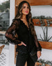 Womens V Neck Crochet Lace Tops Casual Loose Puff Blouses